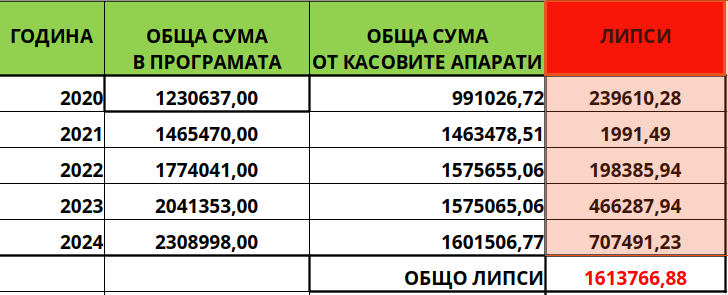 От автоматизирания софтуер на фирмата с който работят касиерите и служителите, с цел лесно и безпогрешно да бъде пускана или спирана услугата – Централен Диспечерски Пункт на съответните таксиметрови автомобили е извадена справка за 5 години на зад. Самата справка е извадена месец по месец с цел да се види всяко плащане на конкретния таксиметров автомобил и/или услуга с точност до минута и ако се наложи да бъде ползвана за насочване на проверяващите при евентуална проверка, за да се видят откъде се генерират разликите.